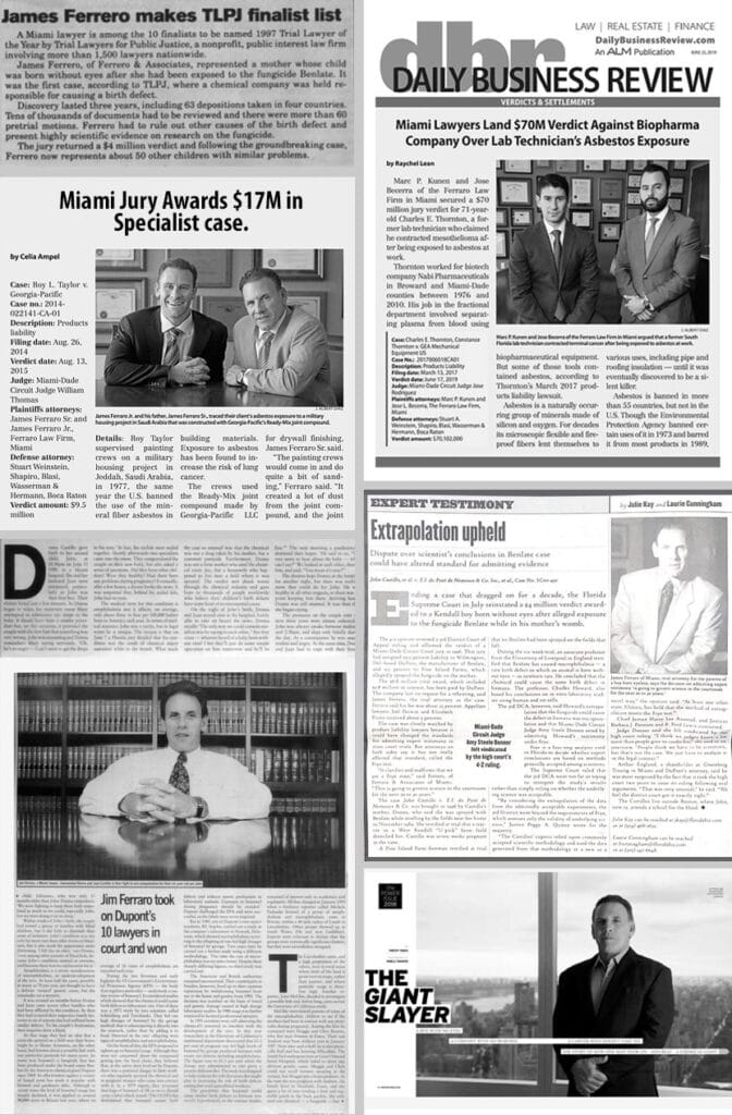 Desde 1985, Ferraro Law se ha forjado una reputación como líder en litigios complejos relacionados con el asbesto, superando continuamente los límites para garantizar la justicia para quienes han sido perjudicados por prácticas negligentes.